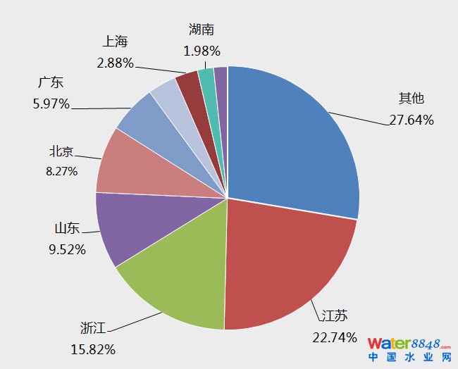 江蘇浙江兩省環(huán)保企業(yè)收入占比分別達(dá)22.74%和15.82%