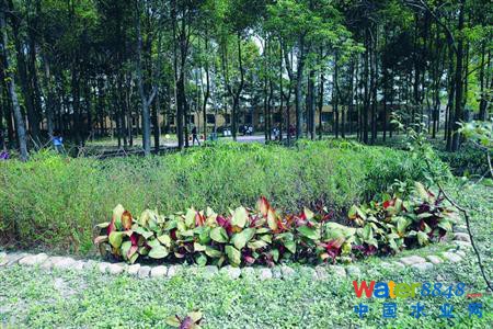 閘北區(qū)長臨路上共康四村內(nèi),有一片綠地,占地約1.3萬平方米,它就像一塊海綿。最初它是建于上世紀(jì)90年代的一個林帶,此后改建成了綠地。閘北區(qū)綠化管理中心負責(zé)人告訴晨報記者,由于綠地環(huán)境不佳,去年下半年開始,閘北綠化部門對它進行了改建,改建過程中應(yīng)用了“海綿城市”的理念“雨水花園”。工程于今年4月竣工,“整個綠地低于地面線50厘米左右,成為一個低洼綠地,綠地中一個約1000平方米的池塘被改建成濕地,如此一來,綠地就成了一個大型蓄水池,下雨時先吸水,然后通過樹木、土壤等的自然滲透以及徑流,最終分流到雨水管網(wǎng)。”