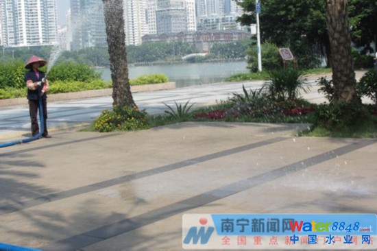 “園林工人用水槍往廣場(chǎng)上噴水,水沒(méi)有積在地面上,而是通過(guò)特殊的透水磚全部滲到了地下。”當(dāng)天,記者在濱湖廣場(chǎng)看到了這一幕。濱湖廣場(chǎng)是南寧市海綿城市改造示范工程之一。沒(méi)有改造前的濱湖廣場(chǎng),因?yàn)榈孛嬗不壤^(guò)高,逢雨必澇、雨后即旱,同時(shí)還將未經(jīng)處理的雨水直接排向南湖,對(duì)南湖水質(zhì)造成了嚴(yán)重的污染。為此,整個(gè)濱湖廣場(chǎng)綜合采用了“滲、滯、蓄、凈”的方式對(duì)道路、綠地和徑流污染控制進(jìn)行“海綿化”改造。“南湖周邊我們都計(jì)劃鋪上透水磚,下雨的時(shí)候,雨水就會(huì)滲到了地下,并經(jīng)過(guò)下面的排水系統(tǒng)流進(jìn)儲(chǔ)水池,再用于綠化灌溉。”現(xiàn)場(chǎng)工作人員介紹說(shuō)。