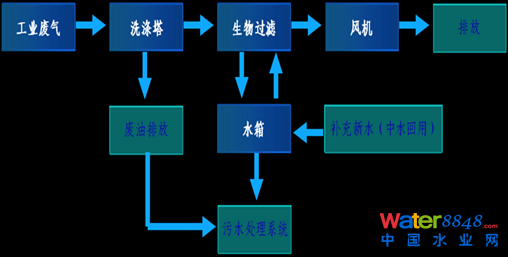 原理: IBF異味氣體生物處理技術(shù)全稱是固定化微生物滴濾池(IBF,Immobilized biological filter),其是在總結(jié)傳統(tǒng)各種生物反應(yīng)器及載體的優(yōu)缺點基礎(chǔ)上,結(jié)合工程實踐,以傳統(tǒng)生物滴濾塔結(jié)構(gòu)為藍本,借鑒生物濾池工程運行經(jīng)驗,采用一種功能化生物載體,并將復(fù)合工程菌中的微生物-生物酶聯(lián)合除臭降解劑固定在載體上,通過生物降解,達到分解和消化惡臭物質(zhì)的目的。