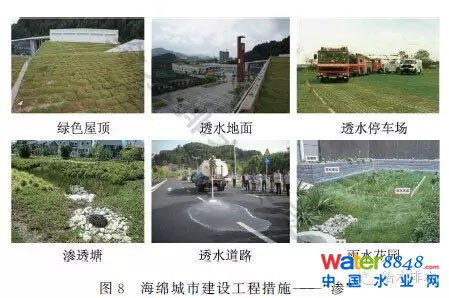 “滲”,減少路面、屋面、地面硬質(zhì)鋪裝、充分利用滲透和綠地技術(shù),從源頭減少徑流(見圖8)。