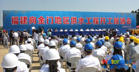 10月12日上午,由水利部和福建省人民政府共同舉辦的福建向金門地區(qū)供水工程開工現(xiàn)場會在晉江市龍湖湖畔舉行,標(biāo)志著福建向金門供水工程正式動工。國臺辦副主任龔清概、水利部副部長劉寧、福建省副省長黃琪玉出席現(xiàn)場會。