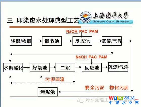 按工藝可分為前處理、染色和印花、后處理等廢水。印染廢水主要是前處理、染色和印花這兩部分水量水量最多、水質(zhì)最差。