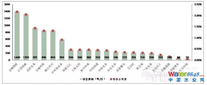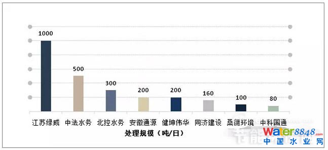 注:1.全部項(xiàng)目均為市政污泥項(xiàng)目;2.數(shù)據(jù)截止到2015年10月;3.以上各個(gè)公司的數(shù)據(jù)僅包括已運(yùn)營(yíng)項(xiàng)目;4.各個(gè)競(jìng)爭(zhēng)主體的項(xiàng)目統(tǒng)計(jì)包括BOT、BOO、DBO、投資運(yùn)營(yíng)項(xiàng)目。