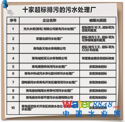 記者梳理今年以來青島市環(huán)保局曝光的所有超標(biāo)排污企業(yè)“黑榜”發(fā)現(xiàn),此次曝光的10家企業(yè)中,新天地水務(wù)有限公司、麥島污水處理廠兩家企業(yè)儼然成為“黑榜”?。新天地水務(wù)有限公司分別在2月、7月、8月、9月、10月共計(jì)5次被環(huán)保局點(diǎn)名曝光,超標(biāo)項(xiàng)多為COD、氨氮。