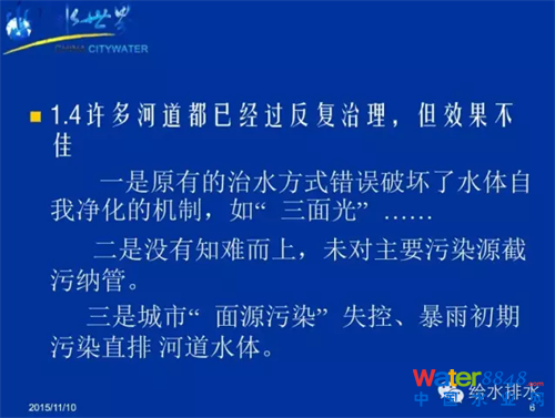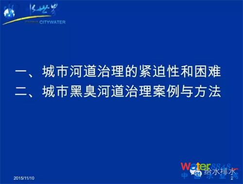 在貫徹國(guó)務(wù)院“水十條”同時(shí),還要落實(shí)海綿城市的建設(shè),將兩者協(xié)同起來是每一位水科技人員必須要面對(duì)的帶有緊迫性的課題。今天,我跟大家交流的是城市黑臭河道治理協(xié)同海綿城市建設(shè)。著重從兩個(gè)方面進(jìn)行闡述:一是城市河道治理的緊迫性和難點(diǎn);二是協(xié)同治理的案例和方法。