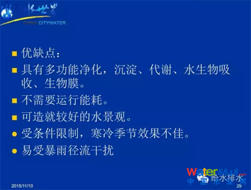 優(yōu)缺點(diǎn):具有多功能凈化,沉淀、代謝、水生物吸收、生物膜。