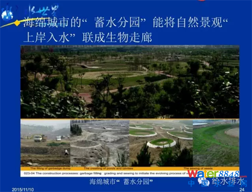海綿城市建設(shè)中的“蓄水公園”能將自然景觀“上岸入水”聯(lián)成生物走廊,擴(kuò)大其水體動(dòng)植物和微生物品種和密度,協(xié)調(diào)處理水中的污染物。