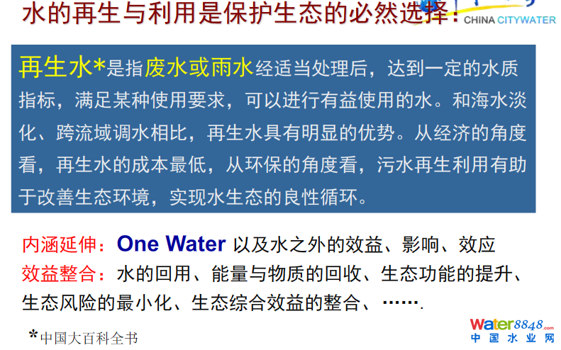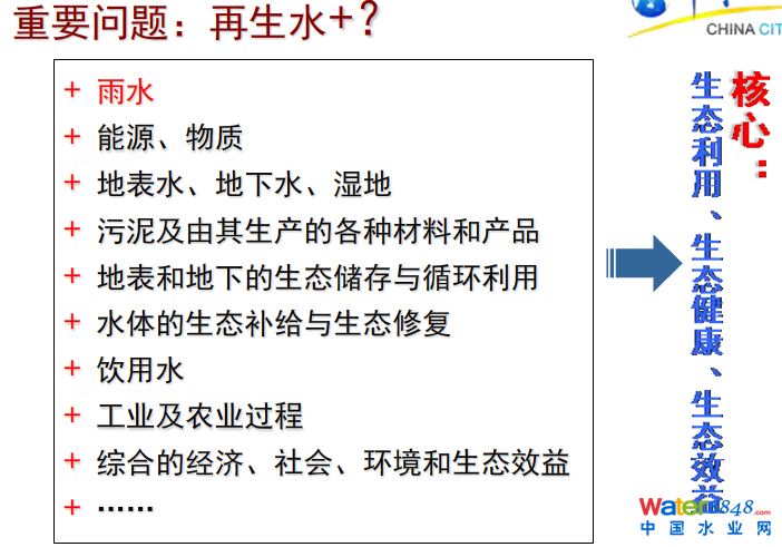 中國工程院院士、中國科學(xué)院生態(tài)環(huán)境研究中心研究員曲久輝介紹了基于水生態(tài)安全的再生水+。他介紹,再生水+的核心問題是把水當(dāng)中的物質(zhì)和能量回收出來,減少環(huán)境污染,增強(qiáng)能量和物質(zhì)的回收。所以,基于能量和物質(zhì)回收的概念,再生水+具有清潔生產(chǎn)和循環(huán)經(jīng)濟(jì)的屬性。