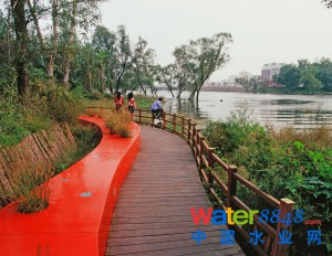 湯河公園西岸休閑座凳及漫步為一體的紅飄帶