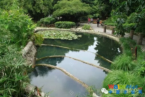 6.修建旁路濕地系統(tǒng)結(jié)合人工濕地污水處理系統(tǒng),水景設(shè)計(jì)追求生態(tài)化和自然化,修建了成都活水濕地公園。用水車(chē)取府南河污水,泵入?yún)捬醭,在厭氧池中設(shè)置尼龍?zhí)盍,以提高處理效果。污水?jīng)厭氧微生物消化和處理后,除去大部分懸浮物和有機(jī)物,出水經(jīng)卵石曝氣溝流入兼氧塘。在兼氧塘中種植鳳眼蓮、浮萍等漂浮植物和少量魚(yú)草,并養(yǎng)殖少量耐污魚(yú)類(lèi)。經(jīng)兼氧塘水生生物凈化處理后,出水通過(guò)暗管流入設(shè)有三級(jí)穩(wěn)定塘和二級(jí)植物床的人工濕地處理系統(tǒng)。