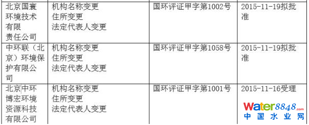 11月16日,環(huán)保部公示了部屬“紅頂”環(huán)評(píng)機(jī)構(gòu)——北京中環(huán)博宏環(huán)境資源科技有限公司(國(guó)環(huán)評(píng)證甲字第1001號(hào))的脫鉤申請(qǐng);11月19日,環(huán)保部發(fā)布消息稱(chēng),擬批準(zhǔn)2家部屬“紅頂”環(huán)評(píng)機(jī)構(gòu)——北京國(guó)寰環(huán)境技術(shù)有限責(zé)任公司、中環(huán)聯(lián)(北京)環(huán)境保護(hù)有限公司的脫鉤申請(qǐng)。
