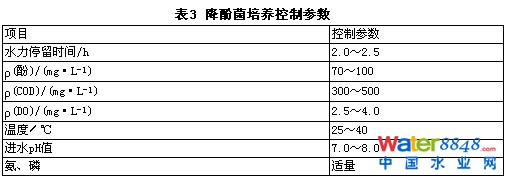 ①選用生物陶粒作為曝氣生物濾池的濾料,利用生活污泥可快速培養(yǎng)出高效的降酚菌種。