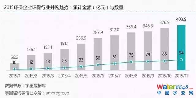 而在企業(yè)并購方面據(jù)Umore統(tǒng)計,11月環(huán)保行業(yè)發(fā)生9例并購,涉及交易總金額達27.1億元。