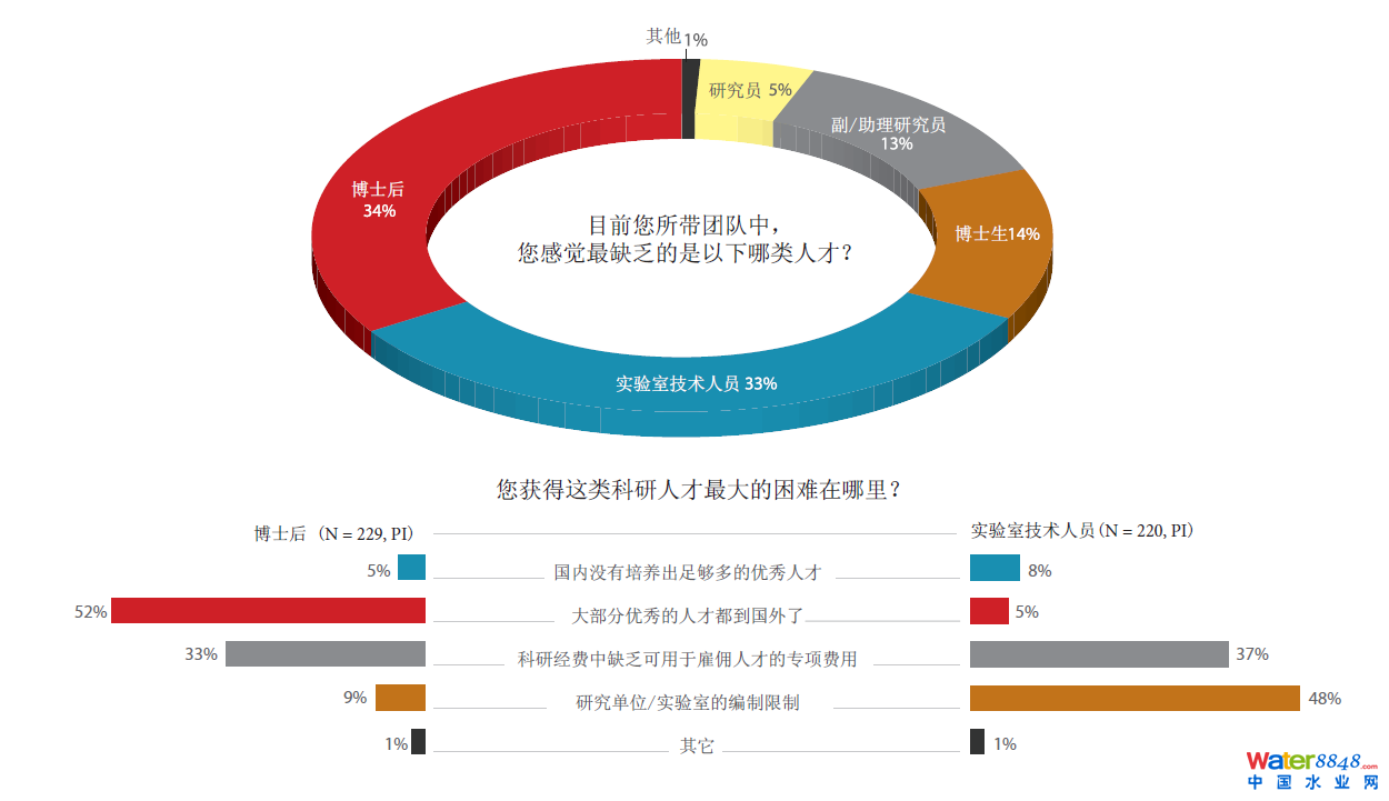 填補(bǔ)人力資源短缺,使科研回報最大化中國有世界上數(shù)量最多的博士生和科技人員。但我們的調(diào)研顯示,許多科學(xué)家卻苦于缺乏博士后研究員和實驗室技術(shù)員(圖6)。這與西方博士后過剩的情況正相反,而他們的許多博士后就來自中國。博士后和技術(shù)人員是中國科研環(huán)境的重要組成部分,尤其是在當(dāng)前的轉(zhuǎn)型時期。有經(jīng)驗的博士后能讓PI更有效地利用時間,還可以在指導(dǎo)年輕學(xué)生和員工方面發(fā)揮關(guān)鍵作用。有能力的技術(shù)人員也日益發(fā)揮著重要的作用,因為越來越多的研究工作中使用的各種復(fù)雜的設(shè)備和技術(shù),需要具備優(yōu)秀專業(yè)技能的技術(shù)人員來有效使用。這些崗位缺少合適的人才,將會影響中國的科研產(chǎn)出,并降低投資回報。那么,中國的科研機(jī)構(gòu)如何才能建立一個更為均衡的人力資源結(jié)構(gòu)呢?