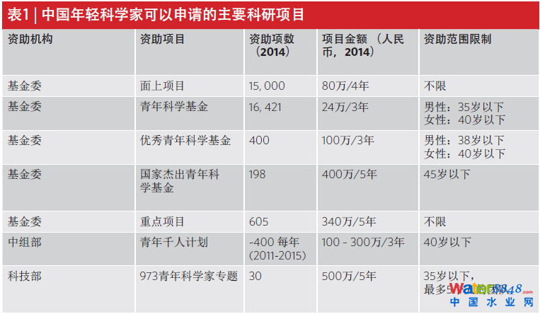 再次,資助機(jī)構(gòu)可更多地扶持優(yōu)秀的青年科學(xué)家,以提高科研生產(chǎn)力并獲得長期效益。中國的年輕PI在剛剛開始獨立研究時,可以獲得政府和科研機(jī)構(gòu)提供的支持。科研機(jī)構(gòu)通常會給年輕PI提供一筆啟動資金,并以此作為合同的一部分,以幫助他們啟動實驗室和研究項目。政府也有資助年輕科研人員的專項資金,如自然基金委的“青年科學(xué)基金”、以及競爭更加激烈的“優(yōu)秀青年科學(xué)基金”和“國家杰出青年科學(xué)基金”(見表1)。中組部的“千人計劃”也設(shè)有“青年千人”項目,旨在從海外吸引40歲以下的優(yōu)秀科學(xué)家。最近,973計劃即國家重點基礎(chǔ)研究發(fā)展計劃,也設(shè)立了資金規(guī)模較小的“青年科學(xué)家專題”。