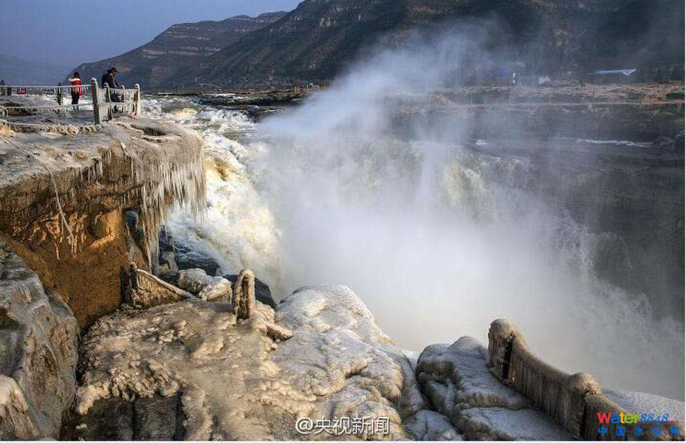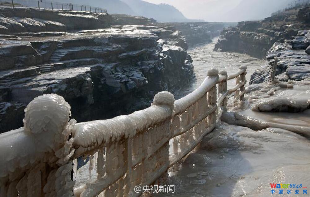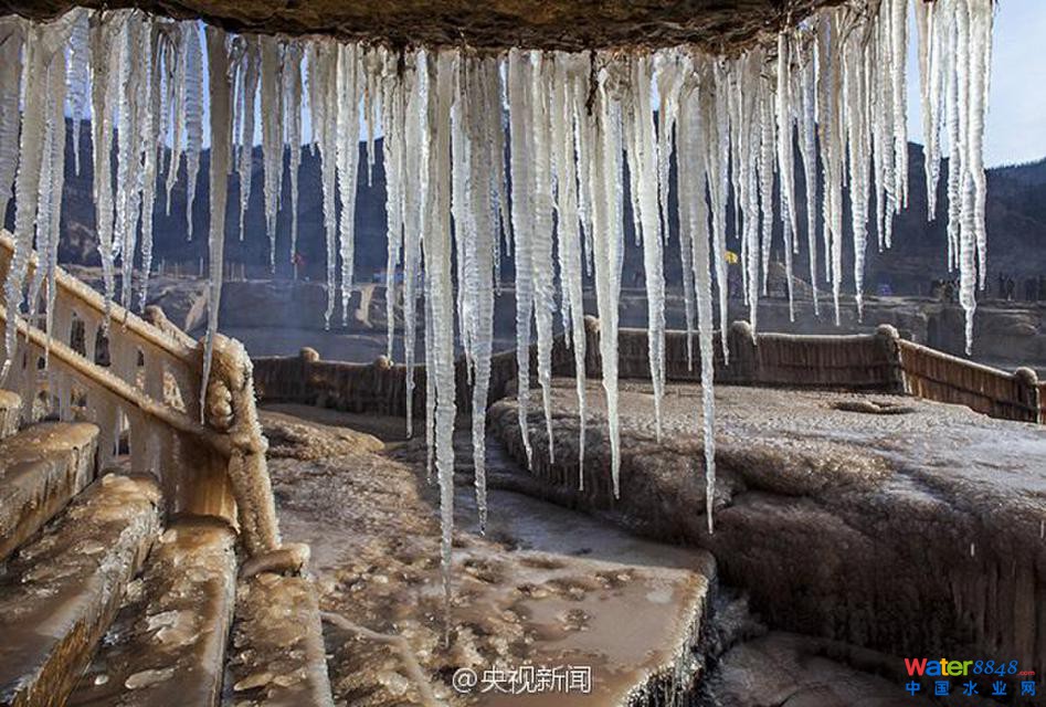 據(jù)中央電視臺新聞中心官方微博 12月26日報道,近日受持續(xù)降溫影響,黃河壺口瀑布出現(xiàn)冰掛美景。這些冰掛都是黃河水從瀑布傾瀉而下,冒起的水霧迅速凍結(jié) 而成。依懸瀑布兩岸的冰掛晶瑩剔透、造型各異,有的像龍須,垂懸在巖石上;有的如無暇白玉,鑲嵌在河岸旁。(央視記者王志杰 圖片來源:中央電視臺新聞中心官方微博)