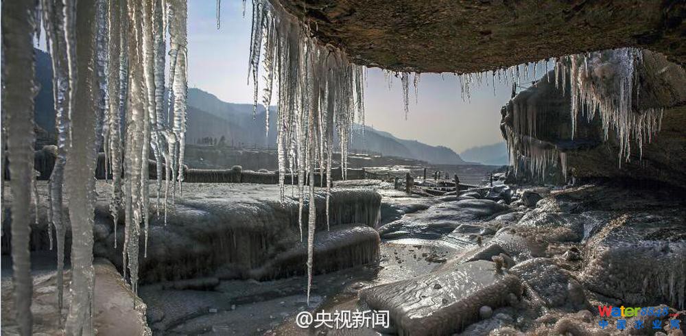 據(jù)中央電視臺新聞中心官方微博12月26日報道,近日受持續(xù)降溫影響,黃河壺口瀑布出現(xiàn)冰掛美景。這些冰掛都是黃河水從瀑布傾瀉而下,冒起的水霧迅速凍結(jié) 而成。依懸瀑布兩岸的冰掛晶瑩剔透、造型各異,有的像龍須,垂懸在巖石上;有的如無暇白玉,鑲嵌在河岸旁。(央視記者王志杰 圖片來源:中央電視臺新聞中心官方微博)