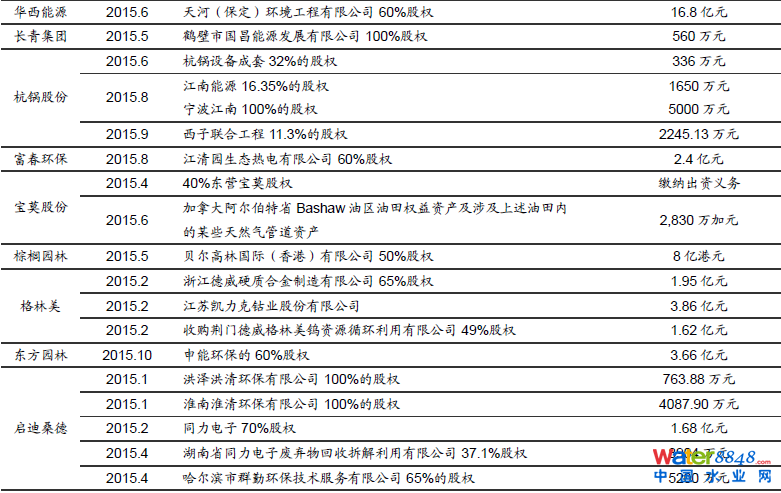 圖表5:2015 年環(huán)保公司并購(gòu)統(tǒng)計(jì)(截至2015.11)