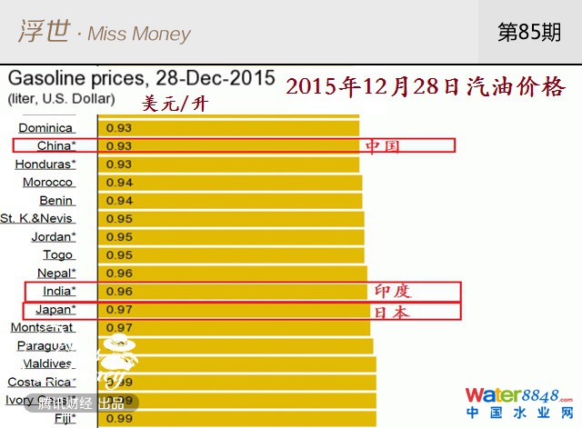 委內(nèi)瑞拉1升汽油大約0.13元;利比亞1升汽油大約0.85元;阿爾及利亞1升汽油大約1.3元;美國最新的數(shù)據(jù)顯示,美國71%地區(qū)的汽油價格已經(jīng)比礦泉水還要便宜。中國目前的汽油價格比日本和印度的汽油價格便宜,未來中國會出現(xiàn)油比水還要便宜的狀況嗎?