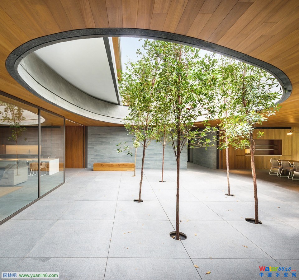 FARM事務(wù)所完美的庭院構(gòu)造,與自然融為一體,與四周融為一體,其中設(shè)置了泳池。