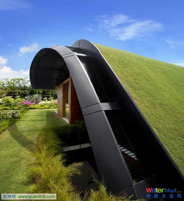 這個相互交叉的屋頂結(jié)構(gòu),看起來很不同,整個房子從地面開始一個美麗的綠色環(huán)境。