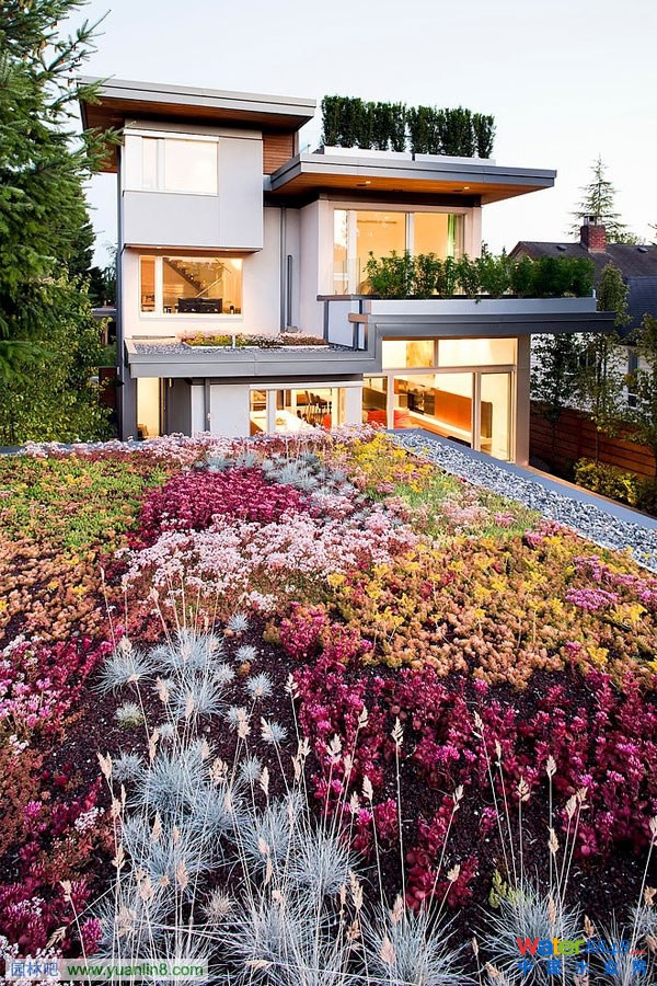 設(shè)計師在屋頂上使用草、植物和苔蘚等美化屋頂,也成為了現(xiàn)在的潮流,不僅美觀,更緣于實用。