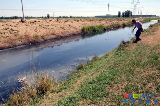 內(nèi)蒙古巴彥淖爾市污水處理廠污水排入附近河道,致水體發(fā)黑,臭味撲鼻。攝影/章軻