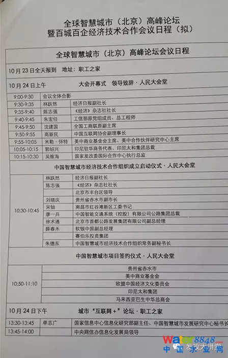 本次人民大會堂舉辦的智慧城市論壇,主辦方經(jīng)濟(jì)日報和經(jīng)濟(jì)雜志社長和有關(guān)領(lǐng)導(dǎo)、工信部原黨組成員、總工程師(部領(lǐng)導(dǎo))、全國工商聯(lián)院副主席沈建國、中國互聯(lián)網(wǎng)協(xié)會高新民副理事長等作了致辭或發(fā)言。