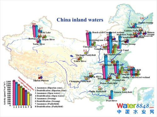 目前人類(lèi)活動(dòng)對(duì)氮循環(huán)的干擾,已遠(yuǎn)大于其他元素,極大地加速了地球生態(tài)環(huán)境的變化,引發(fā)嚴(yán)重的氮循環(huán)失衡、氮污染加劇、溫室氣體排放增多等不良效應(yīng)。據(jù)估算,全球只有約40-60%的氮是通過(guò)反硝化生成氮?dú)饣氐酱髿庵。在全球變暖、污染加劇的雙重脅迫下,是否存在新型的氮循環(huán)過(guò)程,值得我們探究。厭氧氨氧化反應(yīng)的發(fā)現(xiàn)就是一個(gè)明例。厭氧氨氧化是在厭氧條件下由厭氧氨氧化菌以亞硝酸鹽作為電子受體將氨氮直接氧化為氮?dú),避免了?qiáng)效溫室氣體氧化亞氮的產(chǎn)生,并完成封閉的產(chǎn)氮?dú)庋h(huán)。 中科院生態(tài)環(huán)境中心祝貴兵研究組在前期發(fā)現(xiàn)白洋淀葦?shù)?/span>-溝壕系統(tǒng)的水陸交錯(cuò)帶存在厭氧氨氧化反應(yīng)熱區(qū)之后,提出猜想:兩相物質(zhì)的交界面,特別是缺氧-好氧界面,很可能發(fā)生著廣泛的厭氧氨氧化反應(yīng)。 首先,祝貴兵研究組與朱永官研究員合作,在微米、厘米的尺度上證明缺氧-好氧界面發(fā)生著廣泛的厭氧氨氧化反應(yīng)。采集典型水稻根際和非根際土壤,應(yīng)用CARD-FISH、qPCR和同位素示蹤的方法,證明水稻根際土壤發(fā)生顯著的厭氧氨氧化反應(yīng),產(chǎn)生的氮?dú)饬空伎偵闪康?/span>30-40%,而非根際土壤產(chǎn)生的氮?dú)饬績(jī)H占總氮?dú)馍闪康?/span>2-3%,證明了在微米、厘米尺度的水稻根際土壤中,發(fā)生顯著的厭氧氨氧化反應(yīng)。論文發(fā)表于The ISME Journal。 在上述小尺度驗(yàn)證之后,祝貴兵研究組擴(kuò)大研究地點(diǎn),在全國(guó)范圍進(jìn)行大尺度驗(yàn)證,同時(shí)也估算厭氧氨氧化反應(yīng)對(duì)我國(guó)水生態(tài)系統(tǒng)氮循環(huán)的貢獻(xiàn)。 通過(guò)對(duì)10種來(lái)自40個(gè)不同地區(qū)256個(gè)樣品進(jìn)行大規(guī)模取樣研究發(fā)現(xiàn)證實(shí),厭氧氨氧化反應(yīng)在陸地水生態(tài)系統(tǒng)是無(wú)處不在的,甚至在一些極端環(huán)境下,例如高溫(大于75℃)、低溫(低于-25℃)、高pH值(大于9)、低pH值(小于4)、富營(yíng)養(yǎng)化和寡營(yíng)養(yǎng)鹽的不同水體,都發(fā)生著厭氧氨氧化反應(yīng)。厭氧氨氧化反應(yīng)主要發(fā)生在表層沉積物50cm以上區(qū)域,并對(duì)氮循環(huán)起重要作用。相比于河流系統(tǒng),湖泊發(fā)生著更加顯著的厭氧氨氧化反應(yīng),反應(yīng)速率是河流中厭氧氨氧化反應(yīng)速率的數(shù)量級(jí)倍數(shù),其中湖泊岸邊帶是整個(gè)水生態(tài)系統(tǒng)厭氧氨氧化反應(yīng)的熱區(qū)。厭氧氨氧化反應(yīng)在稻田系統(tǒng)的廣泛發(fā)生,補(bǔ)充了土壤生態(tài)系統(tǒng)氮循環(huán)理論體系,為我國(guó)稻田系統(tǒng)氧化亞氮(N2O)釋放量的精確計(jì)算提供科學(xué)借鑒。在沼澤濕地中厭氧氨氧化反應(yīng)的廣泛發(fā)生,將我們對(duì)厭氧氨氧化反應(yīng)發(fā)生條件的認(rèn)識(shí),從傳統(tǒng)的高氮低碳環(huán)境,拓展到高碳低氮環(huán)境,并結(jié)合各種濕地和水生態(tài)系統(tǒng)的面積,推算由厭氧氨氧化反應(yīng)產(chǎn)生的氮流失量(2.0TgNyr-1)占總量的11.4%,論文發(fā)表于Scientific Reports和Environmental Microbiology Reports。 同時(shí),祝貴兵研究組對(duì)與厭氧氨氧化菌共生的功能微生物如氨氧化古菌(ammonia oxidizing archaea, AOA)和反硝化厭氧甲烷氧化菌(nitrite-dependent anaerobic methane oxidization, N-DAMO)也進(jìn)行了相關(guān)研究,論文發(fā)表于Scientific Reports和Environmental Microbiology Reports。 以上結(jié)果對(duì)我國(guó)氧化亞氮的通量計(jì)算、全球氣候變化模型和氮循環(huán)通量產(chǎn)生重要影響。以往對(duì)氧化亞氮通量的計(jì)算,都是基于模型和化肥施加量以及部分樣點(diǎn)的實(shí)測(cè)值,均沒(méi)有考慮厭氧氨氧化的功效。因此,國(guó)家尺度上的氧化亞氮釋放通量很可能要小于目前的估算值。 厭氧氨氧化反應(yīng)在我國(guó)內(nèi)陸水體的分布及其在不同水體和濕地中的貢獻(xiàn),包括河流(a)、湖泊(b)、稻田(c)和沼澤(d) 相關(guān)論文: 1. San’an Nie, Hu Li, Xiaoru Yang, ZhaoJi Zhang, Fuyi Huang, Guibing Zhu*, Yong-Guan Zhu* Nitrogen loss by anaerobic oxidation ammonium in rice rhizosphere. The ISME Journal. 2015. 9, 2059–2067 2. Guibing Zhu*, Shanyun Wang, Leiliu Zhou, Yu Wang, Siyan Zhao, Chao Xia, Weidong Wang, Rong Zhou, Chaoxu Wang, Mike S. M. Jetten, Mariet M. Hefting, Chengqing Yin, Jiuhui Qu. Ubiquitous anaerobic ammonium oxidation in inland waters of China: an overlooked nitrous oxide mitigation process. Scientific Reports. 11/2015; 5:17306. DOI:10.1038/srep17306 3. Leiliu Zhou, Shanyun Wang, Yuxuan Zou, Chao Xia, Guibing Zhu*. Species, Abundance and Function of Ammonia-oxidizing Archaea in Inland Waters across China. Scientific Reports.?11/2015; 5:15969. DOI:10.1038/srep15969 · 4. Guibing Zhu*, Leiliu Zhou, Yu Wang, Shanyun Wang, Jianhua Guo, Xi-En Long, Xingbin Sun, Bo Jiang, Qiaoyun Hou, Mike S M Jetten, Chengqing Yin. Biogeographical distribution of denitrifying anaerobic methane oxidizing bacteria in Chinese wetland ecosystems. Environmental Microbiology Reports. 2014. DOI: 10.1111/1758-2229.12214. 5. Guibing Zhu* ·?Chao Xia?·?Shanyun Wang?·?Leiliu Zhou?·?Lu Liu?·Siyan Zhao?·Occurrence, activity and contribution of anammox in some freshwater extreme environments. Environmental Microbiology Reports. 2015. 7(6), 961–969 環(h