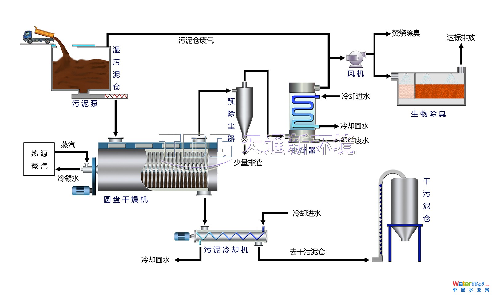 圓盤式污泥干化工藝系統(tǒng)流程短,既可全干化,也可半干化,無須返混,可靠性高,安全性高。