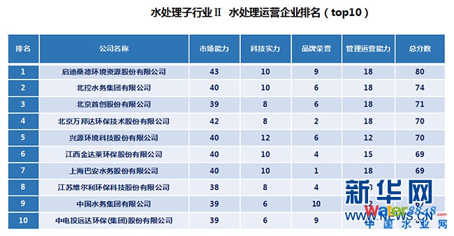圖為,《中國水處理企業(yè)排名》水處理子行業(yè)Ⅱ水處理運營企業(yè)排名(top10)