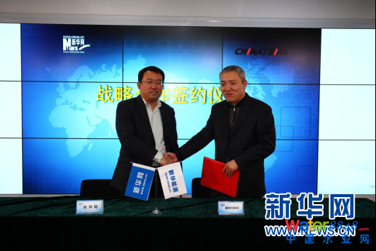 圖為,新華網(wǎng)能源與環(huán)保事業(yè)部總監(jiān)宋世恩與唐宋大數(shù)據(jù)副總經(jīng)理馬強簽約