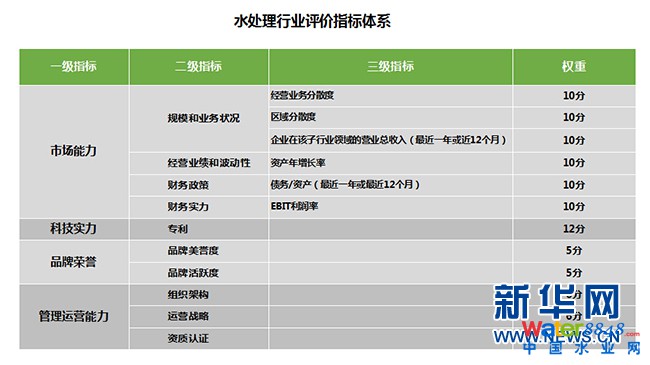 圖為,《中國水處理企業(yè)排名》評價指標體系