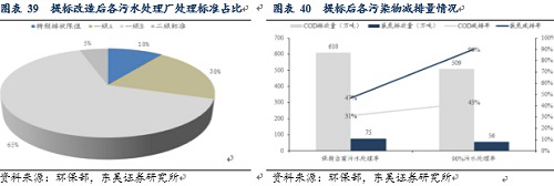 根據(jù)環(huán)保部發(fā)布《城鎮(zhèn)污水處理廠污染物排放標準(征求意見稿)》,2017年前敏感區(qū)域內(nèi)53%污水處理廠需要提標改造到一級A,敏感區(qū)域外30%需要提標改造到一級B,全國10%污水處理廠需要提標改造到特別排放限制;今后新建污水處理廠均采用一級A標準。執(zhí)行新標準后,COD和氨氮將分別減排31%和47%;若提高污水處理率到歐美發(fā)達國家的90%水平,2030年COD和氨氮將分別減排43%和60%。