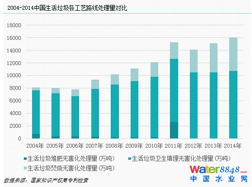 90年代末,垃圾填埋的對(duì)環(huán)境的威脅及占地問題開始得到重視,規(guī)范化和逐步取代填埋的政策導(dǎo)向開始確立。2000年起,《城市生活垃圾處理及污染防治技術(shù)政策》、《可再生能源發(fā)電價(jià)格和費(fèi)用分?jǐn)傇囆修k法》、《生活垃圾焚燒污染控制標(biāo)準(zhǔn)》等一系列法律、規(guī)劃、和標(biāo)準(zhǔn)逐步奠定了垃圾焚燒工藝路線發(fā)展的政策環(huán)境,填埋所占的垃圾處理量比率開始不斷降低,而以焚燒為主的其它工藝的處理量比率不斷升高。由于焚燒的技術(shù)含量更高以及核心設(shè)備(焚燒爐等)的國產(chǎn)化需求,我國的第一個(gè)固廢處理技術(shù)創(chuàng)新高峰也在這一時(shí)期到來。與此同時(shí),垃圾處理市場(chǎng)化進(jìn)程也在逐步往前走,如桑德環(huán)境(合加資源)、三峰環(huán)境、綠色動(dòng)力環(huán)保等現(xiàn)今已成為行業(yè)龍頭的幾家固廢處理(垃圾焚燒)企業(yè)也在此階段完成關(guān)鍵性的資源積累,開始在業(yè)務(wù)上快速橫向擴(kuò)張(跑馬圈地)。