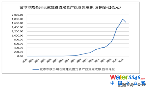 隨著我國城鎮(zhèn)化進(jìn)程的推進(jìn),城市景觀建設(shè)投資規(guī)模不斷擴(kuò)大,2000 年城市園林綠化固定資產(chǎn)投資額僅為 143.20 億元,2013 年已達(dá)到 1,647.40 億元,年均增長率在 20%以上。在固定資產(chǎn)投資推動(dòng)下,我國城市建成區(qū)綠化覆蓋率由2006 年的 35.11%增加到 2014年的40.22%。