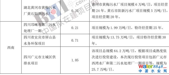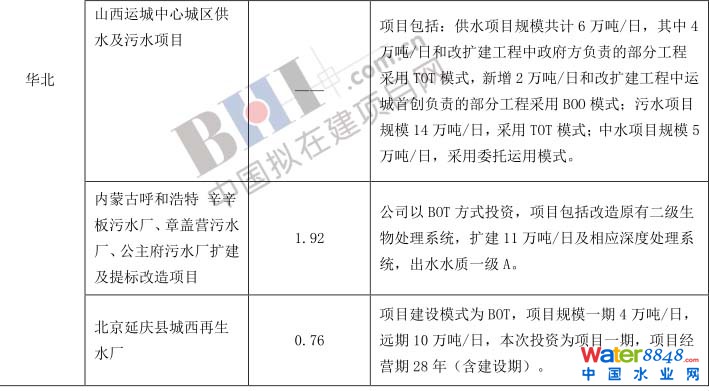 圖表5:2015年首創(chuàng)股份新增水處理項(xiàng)目列表