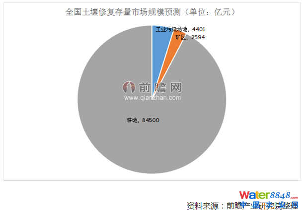 在此利好條件下,土壤修復(fù)行業(yè)將迎來投資熱潮。從污染源的角度分類,土壤修復(fù)重點包括工業(yè)污染場地恢復(fù)、礦區(qū)治理及其所相關(guān)的水污染治理以及農(nóng)田污染治理三方面工作。前瞻產(chǎn)業(yè)研究院認(rèn)為,10萬億存量市場中,耕地領(lǐng)域?qū)@得8.45萬億元市場,工業(yè)污染場地約為0.44萬億元市場,礦區(qū)則為0.25萬億元市場。