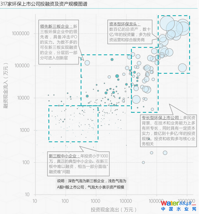 317家環(huán)保上市公司投融資及資產(chǎn)規(guī)模圖譜如下: