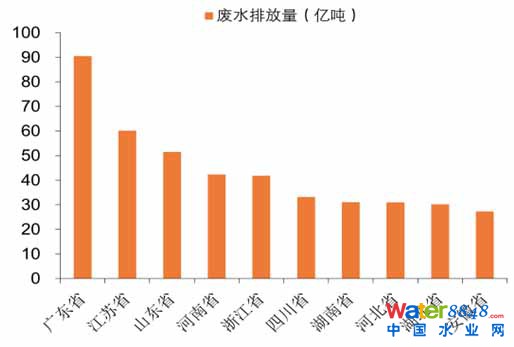 污水排放量最多的前十省份