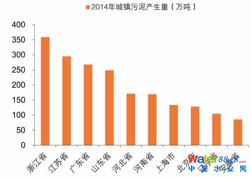 2014城鎮(zhèn)污泥產(chǎn)生量最多的前十省份