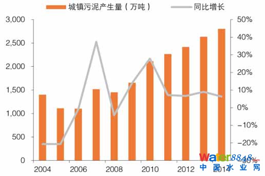 近年來(lái)居民生活用水量和工業(yè)用水量不斷增加,污水處理量也隨之上升。作為污水處理的“衍生品”,我國(guó)污泥產(chǎn)量年年攀升。據(jù)了解2015年市政污泥產(chǎn)量達(dá)3500萬(wàn)噸。而當(dāng)前污泥處理處置市場(chǎng)發(fā)育緩慢。顯然,巨大的污泥處理處置需求和初期的市場(chǎng)供應(yīng)不足帶來(lái)的供需矛盾,將帶動(dòng)污泥產(chǎn)業(yè)的新一輪發(fā)展。