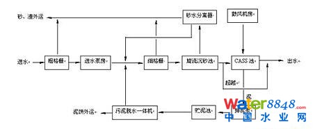技術(shù)特點(diǎn)與優(yōu)勢(shì): ● 投資費(fèi)用低 改良型氧化溝工藝采用微孔曝氣(或大功率機(jī)械曝氣)與機(jī)械推流方式配合運(yùn)行,可以使氧化溝設(shè)計(jì)有效水深達(dá)到 5.0米以上,占地面積大幅減小,投資費(fèi)用大幅降低。 ● 運(yùn)行費(fèi)用低 改良型氧化溝工藝采用高效曝氣方式,工藝根據(jù)進(jìn)水水質(zhì)地不同可調(diào)節(jié)回流污泥分配,可大幅節(jié)省設(shè)備運(yùn)行費(fèi)用,從而降低運(yùn)行費(fèi)用。 ● 運(yùn)行管理方便 改良型氧化溝工藝成熟,運(yùn)行穩(wěn)定,常規(guī)管理方便。 CASS 工藝 CASS(Cyclic Activated S1udge System) 工藝是普通 SBR 工藝的一種改進(jìn)型工藝。 CASS 反應(yīng)池由預(yù)反應(yīng)區(qū)和主反應(yīng)區(qū)組成,預(yù)反應(yīng)區(qū)控制在缺氧狀態(tài),因此,提高了對(duì)難降解有機(jī)物的去除效果提高。 CASS 進(jìn)水是連續(xù)的,因此進(jìn)水管道上 無電動(dòng)控制閥 ,單個(gè)池子可獨(dú)立運(yùn)行 。 CASS 工藝可以根據(jù)脫氮除磷效果的要求,將預(yù)反應(yīng)區(qū)分成厭氧、缺氧兩段。在工藝運(yùn)行過程中,可根據(jù)實(shí)際污泥性狀和除磷要求選擇回流裝置的開啟。 CASS 工藝處理流程簡(jiǎn)圖如下: ![]() 技術(shù)特點(diǎn)與優(yōu)勢(shì):
