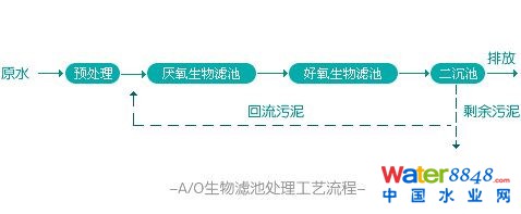 工藝簡(jiǎn)介 曝氣生物濾池(Biological Aeration Filtration),就是在生物濾池處理裝置中設(shè)置填料,通過人為供氧,使填料上生長(zhǎng)大量的微生物。曝氣生物濾池由濾床、布?xì)庋b置、布水裝置、排水裝置等組成。曝氣裝置采用配套專用曝氣頭,產(chǎn)生的中小氣泡經(jīng)填料反復(fù)切割,達(dá)到接近微控曝氣的效果。由于反應(yīng)池內(nèi)污泥濃度高,處理設(shè)施緊湊,可大大節(jié)省占地面積,減少反應(yīng)時(shí)間。 工藝流程
