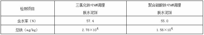 表5聚合硫酸鐵和三氯化鐵調(diào)理后脫水泥餅中總鐵殘留量