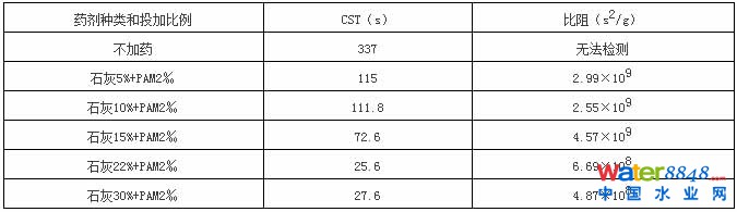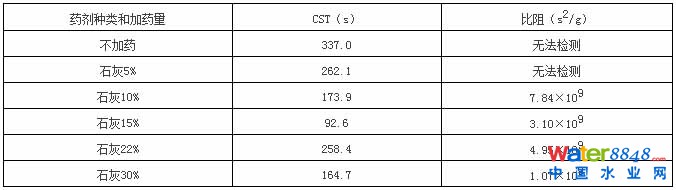 表3石灰單獨(dú)調(diào)理對(duì)污泥脫水性能的影響