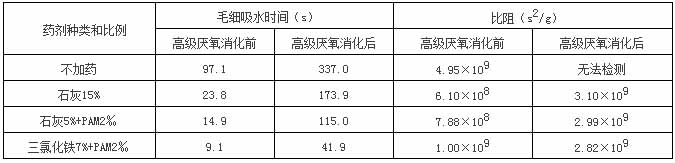 表2高級(jí)厭氧消化前后污泥脫水性能變化