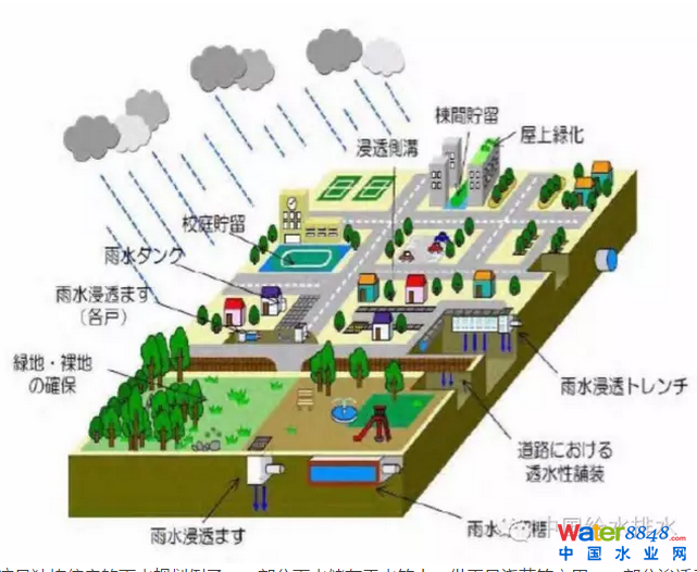 這是雨水儲(chǔ)水(貯留施設(shè))和雨水滲透(浸透施設(shè))的各種形式。這也可以說(shuō)是海綿城市的一部分技術(shù)。
