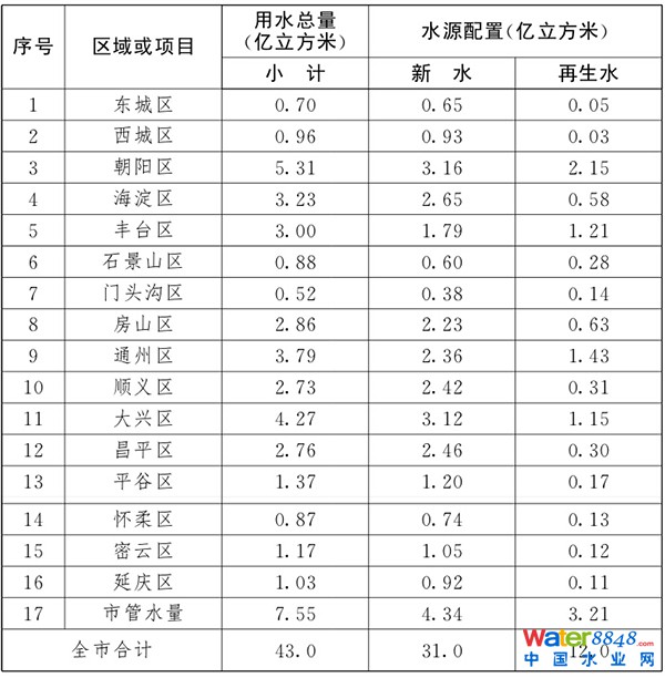 注:1.市管水量包括人口疏解預留生活水量、市管河道環(huán)境用水量及環(huán)衛(wèi)集團、四環(huán)路、跨區(qū)快速路噴灑等市政雜用使用的再生水量三部分。市管河道主要為永定河及城六區(qū)范圍內的市屬管理河道。